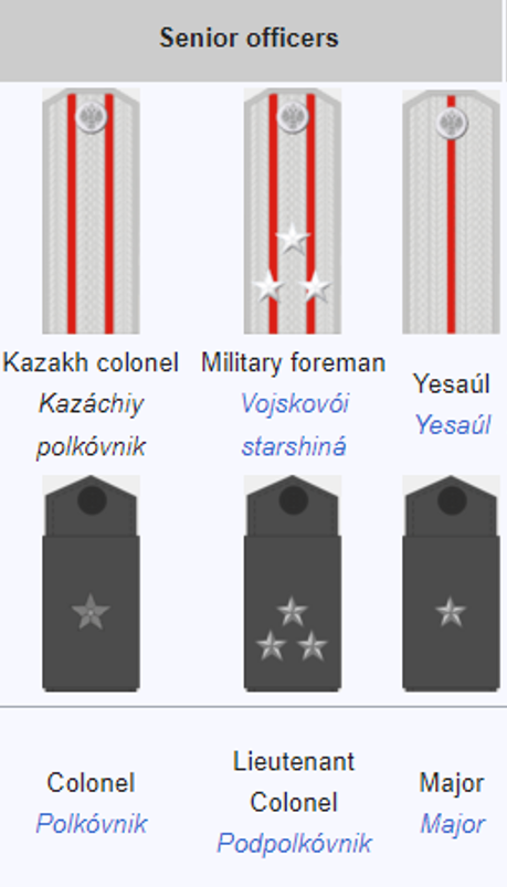 Mikhail is listed in a few publications as a full "Ataman" this rank/title is normally a Colonel, however the above image is the only one to show his senior rank and that is the equivalent of a Lieutenant Colonel