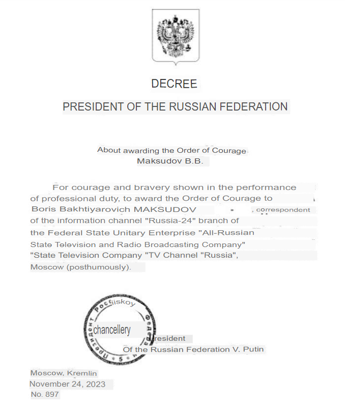 On the afternoon of November 22, Maksudov was filming a report about the 503rd Motorized Rifle Regiment, near the village of Myrne, when an explosive device was dropped from a drone. The military correspondent received multiple shrapnel wounds, open fractures of the limbs, and his fingers were torn off.