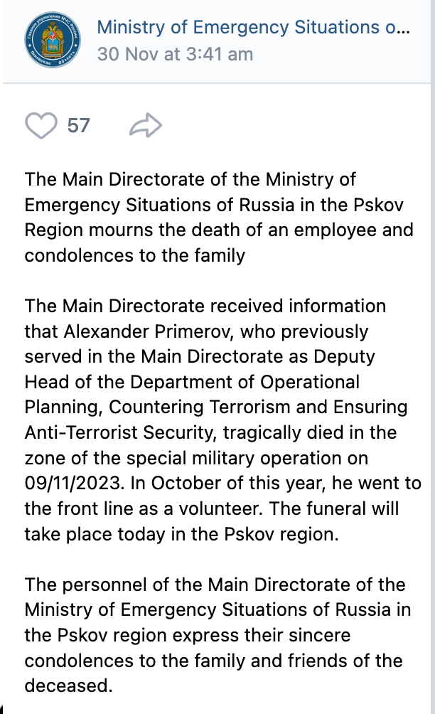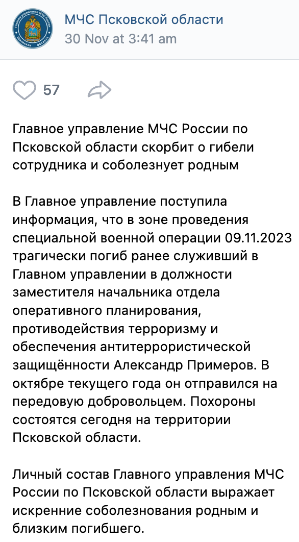 Unit: Pskov Main Directorate of the Ministry of Emergency Situations of Russia
