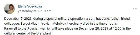 "Captain of the Armed Forces and Colonel of the Main Directorate of the Federal Penitentiary Service. When partial mobilization began in September last year [2022], Sergey Vladimirovich was called up for military service."