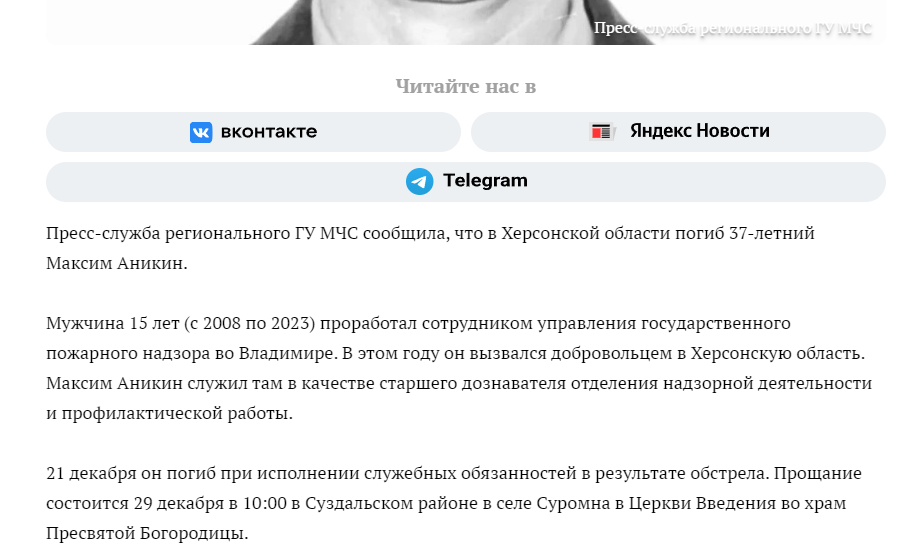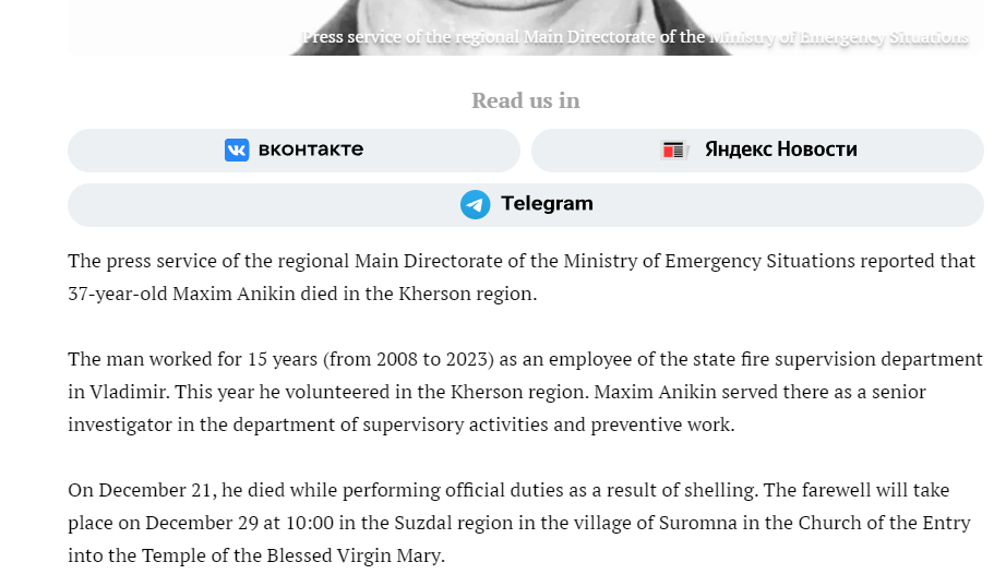 Place of Death: Kherson Region (artillery)