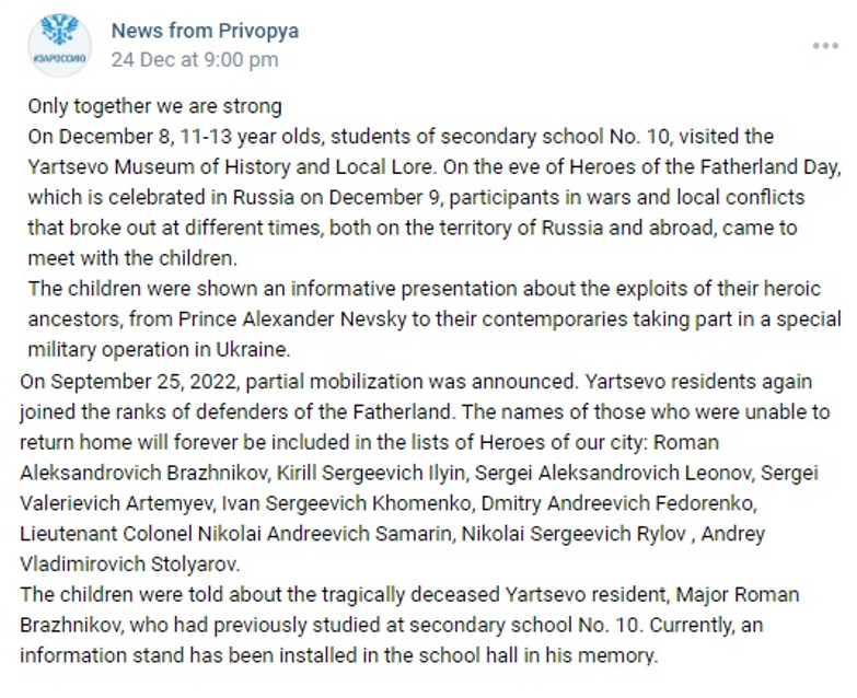 Previously: There is anecdotal evidence that before being mobilized to the 24th MRR he had connections to the Spetsnaz community. Certainly his medals testify to him being more experienced than indicated by his obituaries. His card will be updated if we are able to confirm these connections.