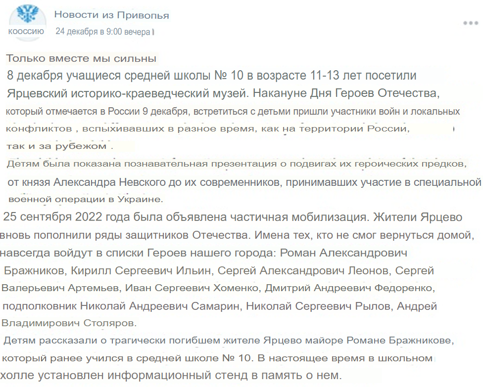 Living in: Yartsevo, Yartsevsky district, Smolensk Oblast, Russia