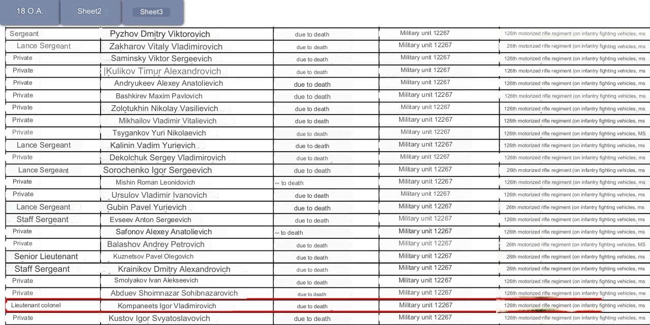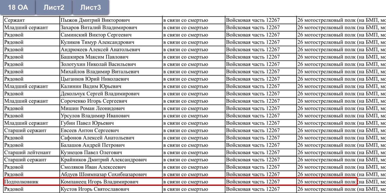 Igor is listed in this leaked document of 18th Army casualties