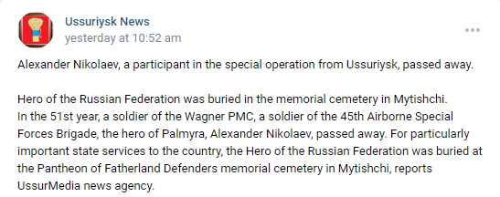 Unit: PMC Wagner, 45th Separate Guards Special Purpose Brigade