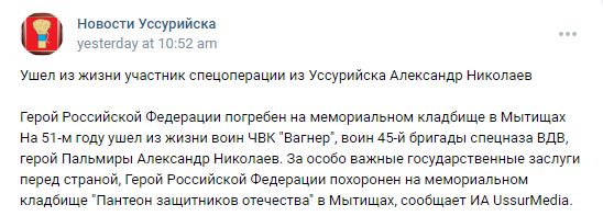 The Hero of the Russian Federation is buried at the Pantheon of Defenders of the Fatherland memorial cemetery in Mytishchi. The memorial is a sensitive facility and is under the jurisdiction of the Ministry of Defense of the Russian Federation. The largest military memorial in Russia is intended for the burial of retired and active high-ranking employees of the Armed Forces of Russia, the USSR and citizens who have particularly important state services to the country.