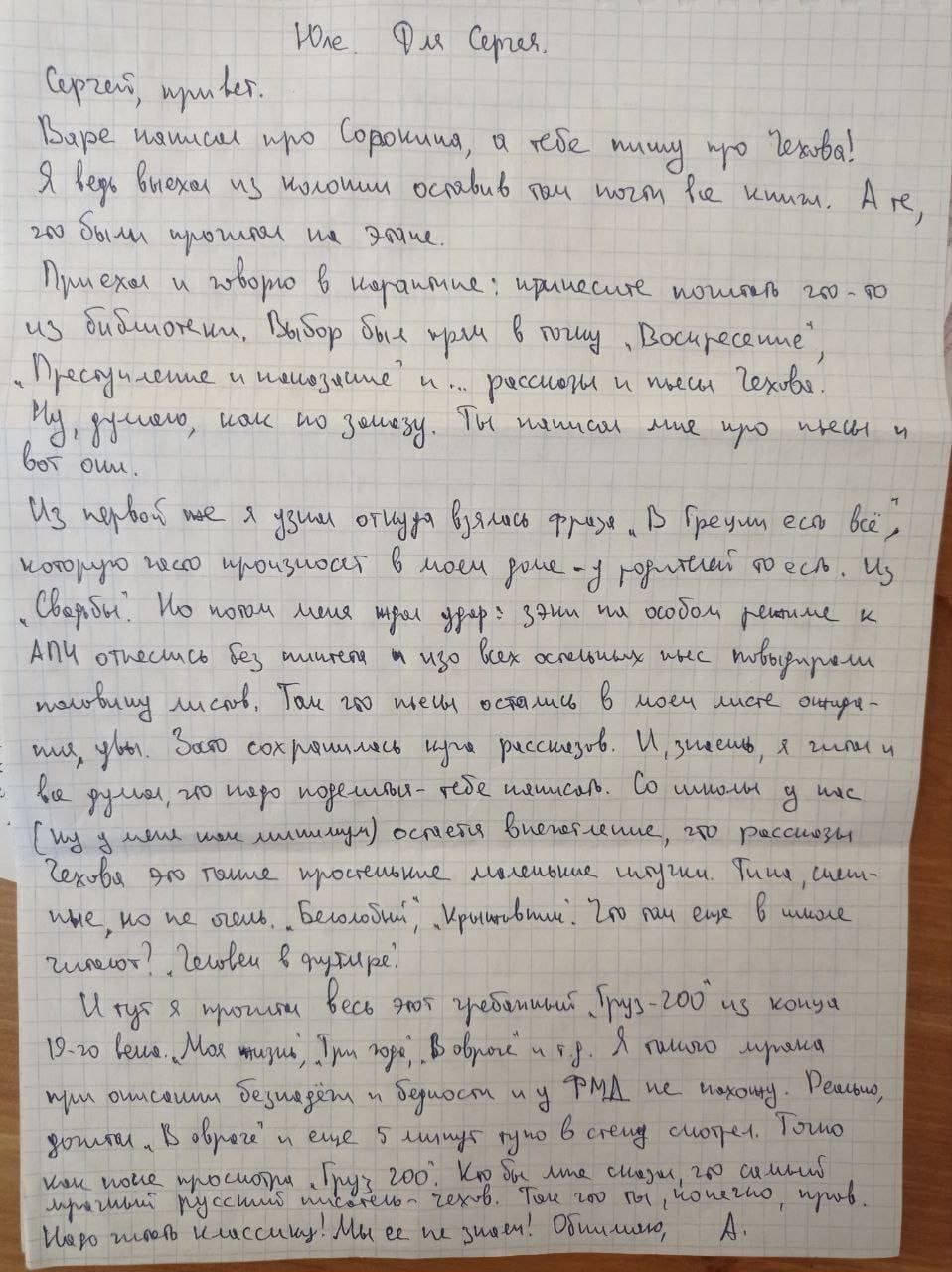 Alexey's Last Written Note