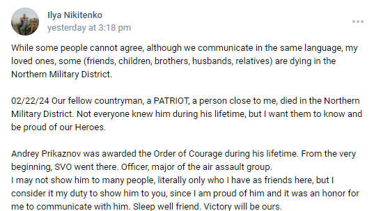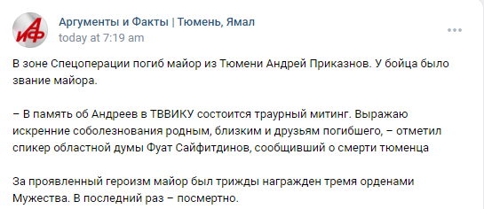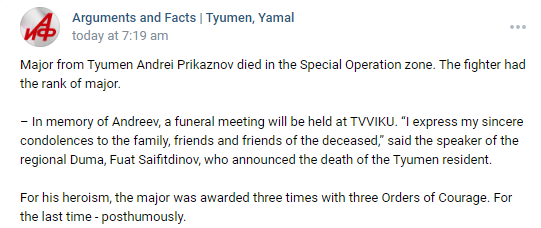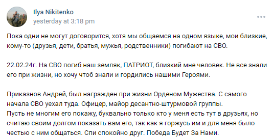 Andrey Prikaznov was awarded the Order of Courage during his lifetime. From the very beginning, SVO went there. Officer, major of the air assault group.