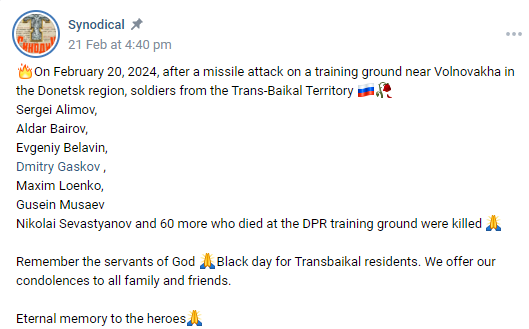 Place of Death: Training ground near Trudovskoye, Volnovakha, Donetsk Oblast, Ukraine (via HIMARS)