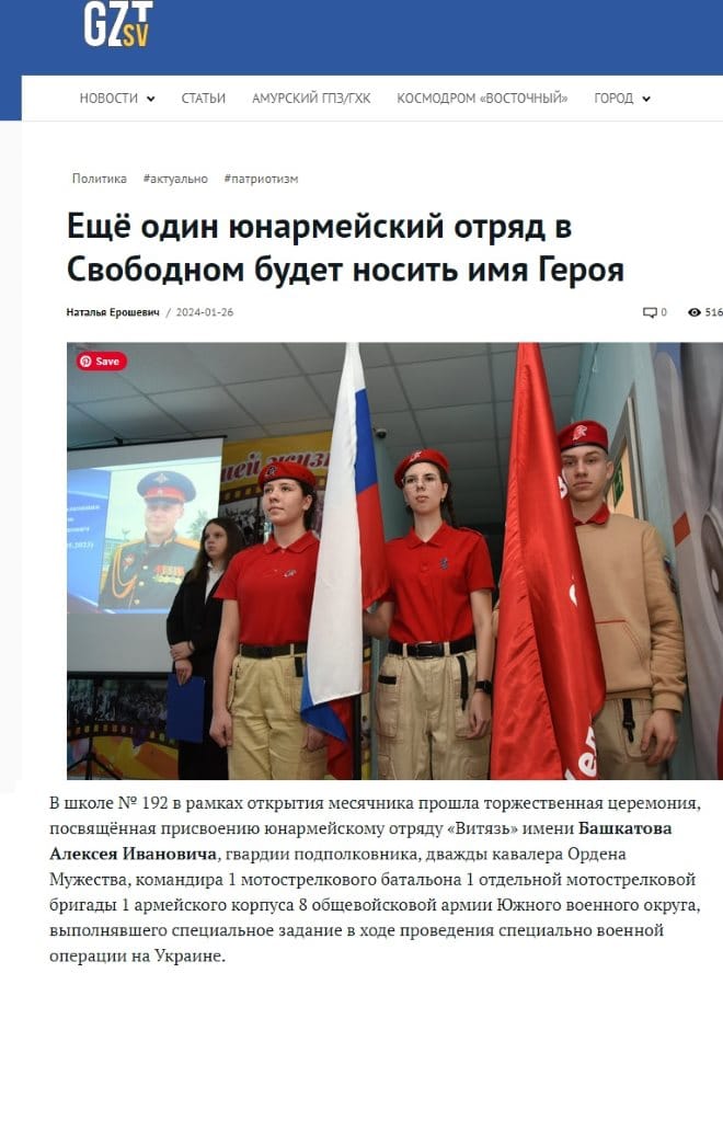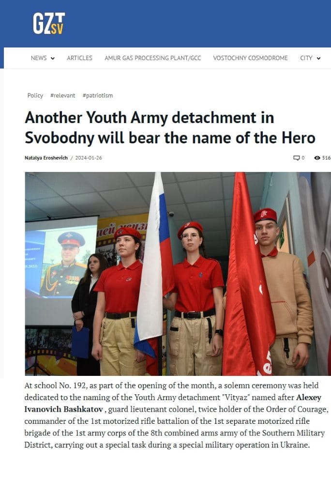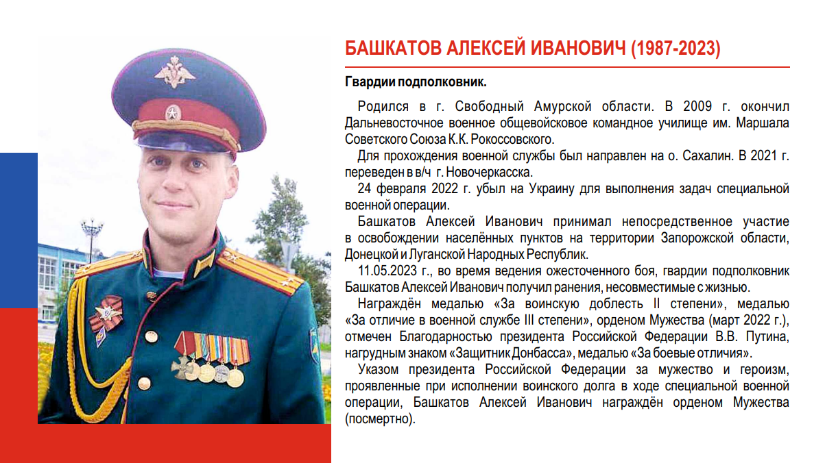 "In 2022, Svobodnenets was awarded the Order of Courage, the Gratitude of the President of the Russian Federation Vladimir Putin, the “Defender of Donbass” badge, and the medal of the Minister of Defense of the Russian Federation “For Military Distinction.” Major Alexey Bashkatov received the rank of guard lieutenant colonel ahead of schedule and entered the Moscow Military Academy."