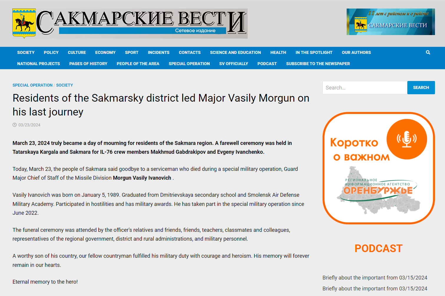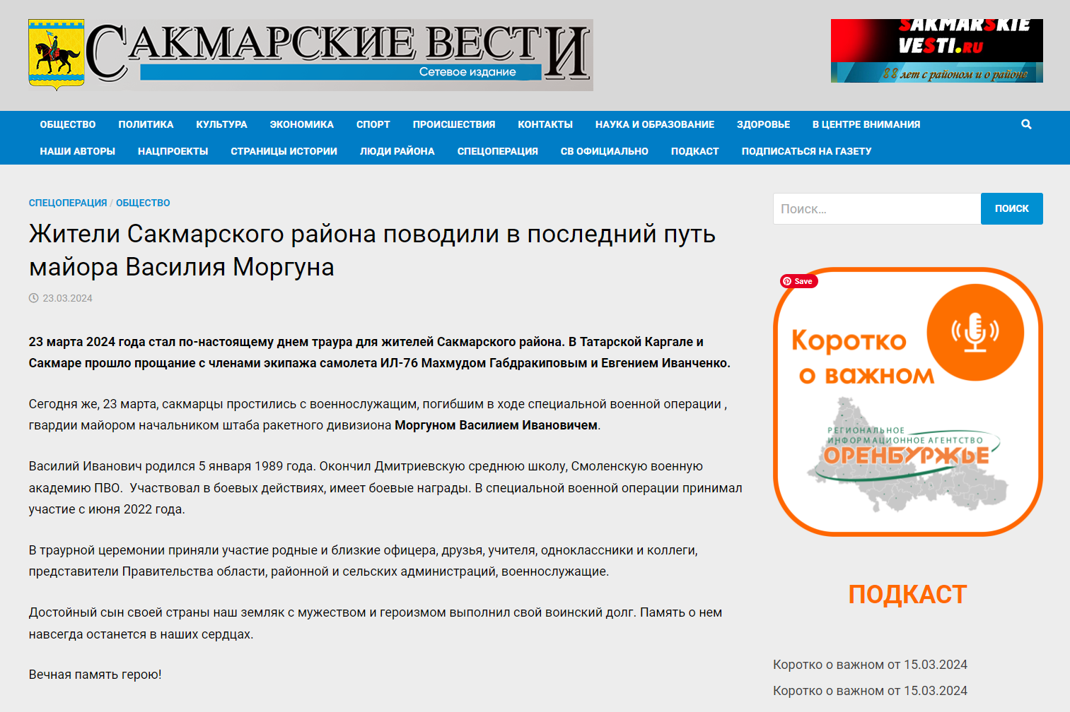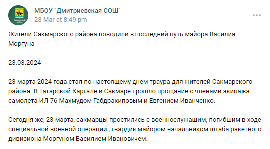 Vasily Ivanovich was born on January 5, 1989. Graduated from Dmitrievskaya secondary school and Smolensk Air Defense Military Academy. Participated in hostilities and has military awards. He has taken part in the special military operation since June 2022.