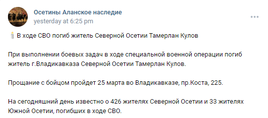 Russian Name: Кулова Тамерлана Ахсаровича
