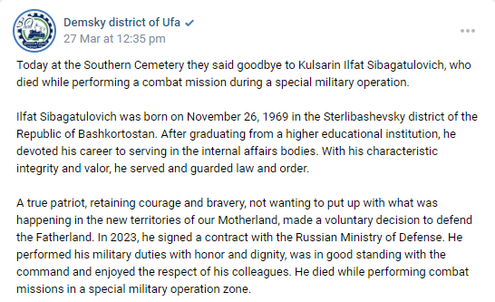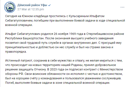 Previously: Ministry of Internal Affairs (Head of the Sterlibashevevsky District)
