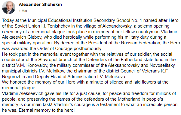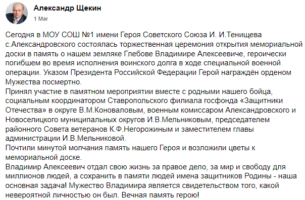 Russian Name: Глебов Владимир Алексеевич