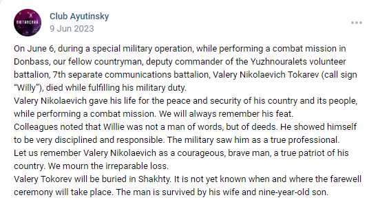 Valery Tokarev received an injury incompatible with life while performing repair work on a tower.