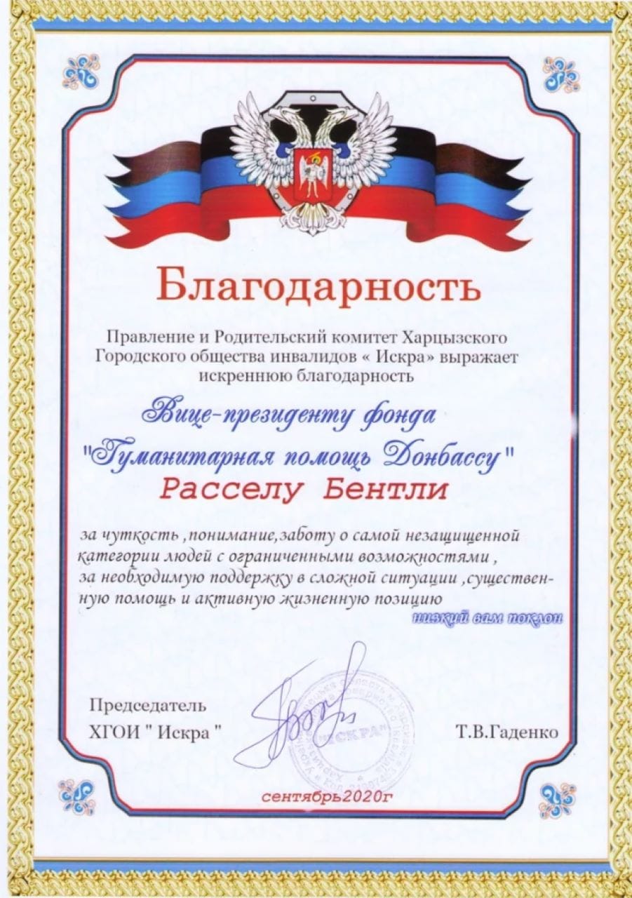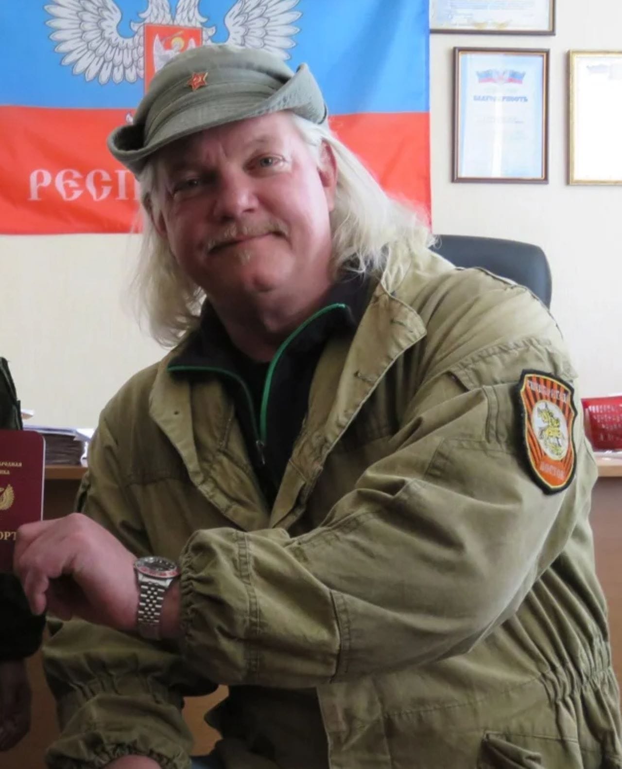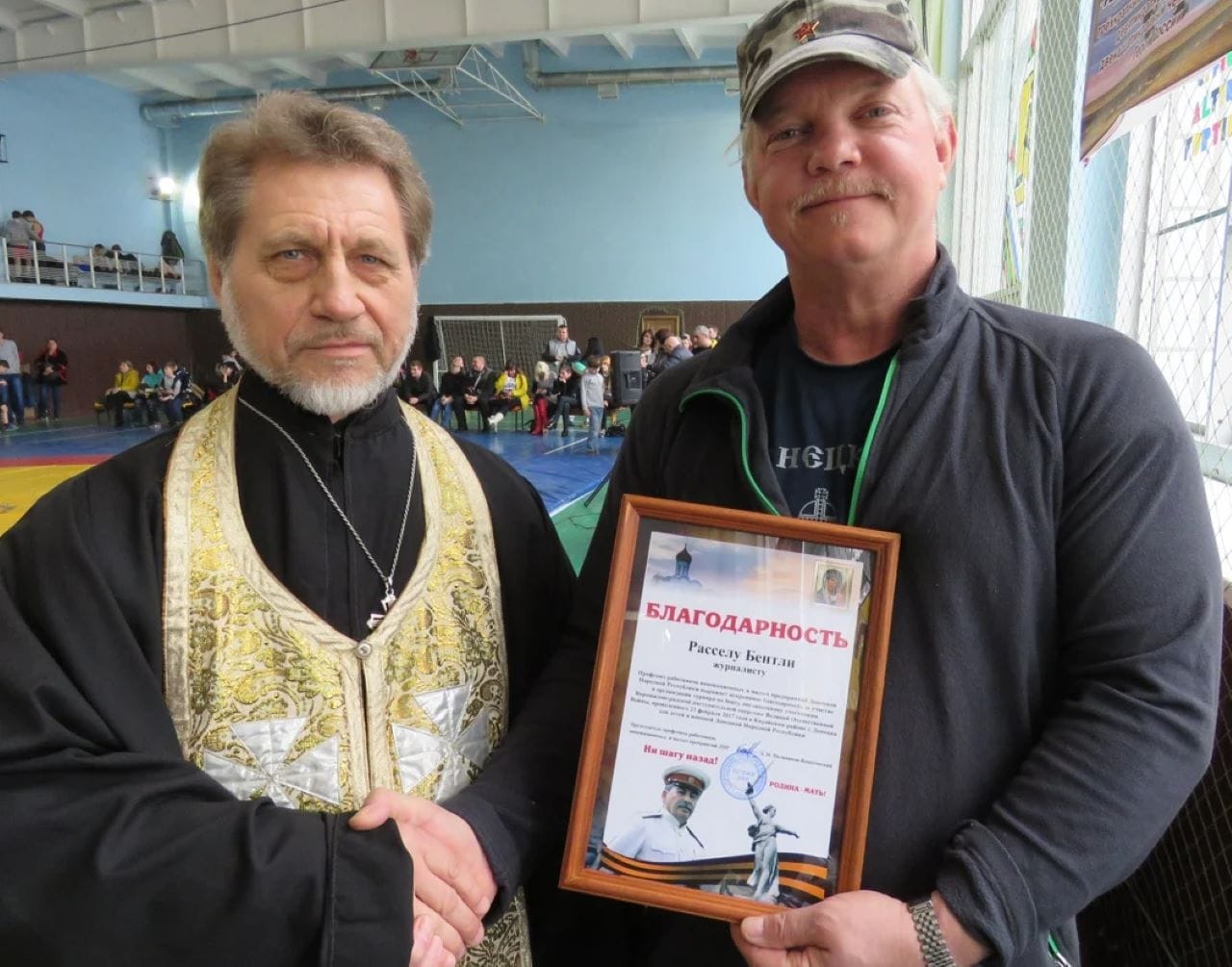 Then 54, Bentley didn’t speak Russian at the time, but made his way to the war-torn city of Donetsk. There he hooked up with a fellow Russian-sympathist expat, a writer from Italy, who showed him around and helped him hook up with the Vostok Battalion — a militia group linked to the Russian intelligence service.