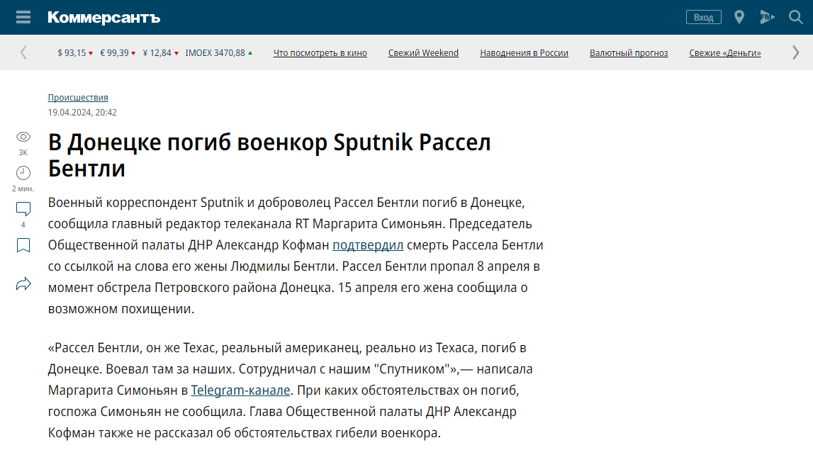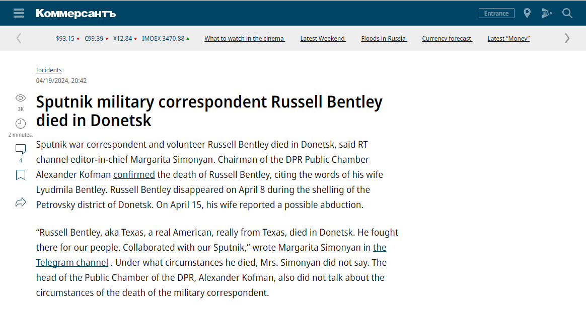 Bentley became a citizen of the breakaway Donetsk People’s Republic in 2017, and became a citizen of Russia in 2020. He grew belligerent when pressed on the contradictions of his decision to side with an authoritarian like Putin. ”What about Putin poisoning his political rivals?” a reporter asked him, referring to Alexei Navalny, the opposition leader who blames the Kremlin for poisoning him with a powerful nerve agent.