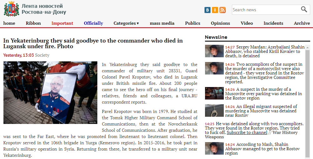 Place of Death: Luhansk Oblast, Ukraine (via Storm Shadow (videos below))