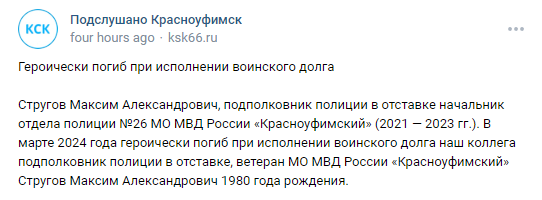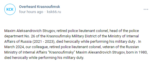Head of the police department No. 26 of the Krasnoufimsky Military District of the Ministry of Internal Affairs of Russia (2021 - 2023)