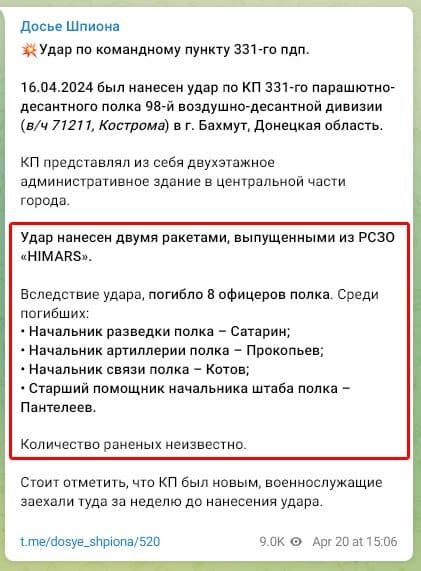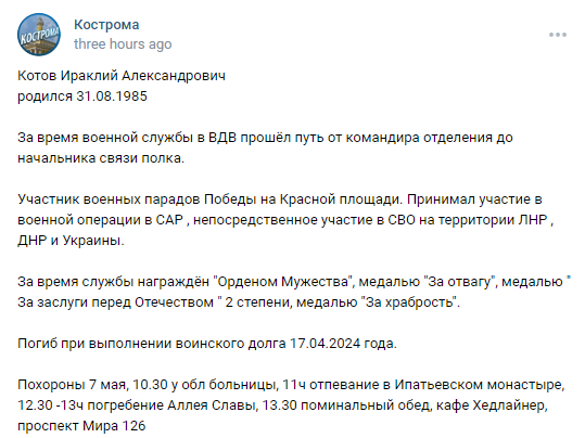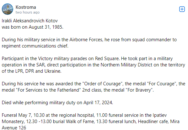 Place of Death: Bakhmut, Donetsk Oblast, Ukraine (Command Post Strike via HIMARS)