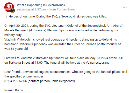 On the Night of the April 30, 2024 the AFU Missile Forces, launched a large-scale strike that included ATACMS ballistic missiles against 4 locations in the Temporarily Occupied Crimea, Although the location that got the most publicity was the hit at Chornomors'ke there is no confirmed information that this is where the Lieutenant Colonel was permanently removed from service.