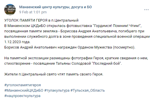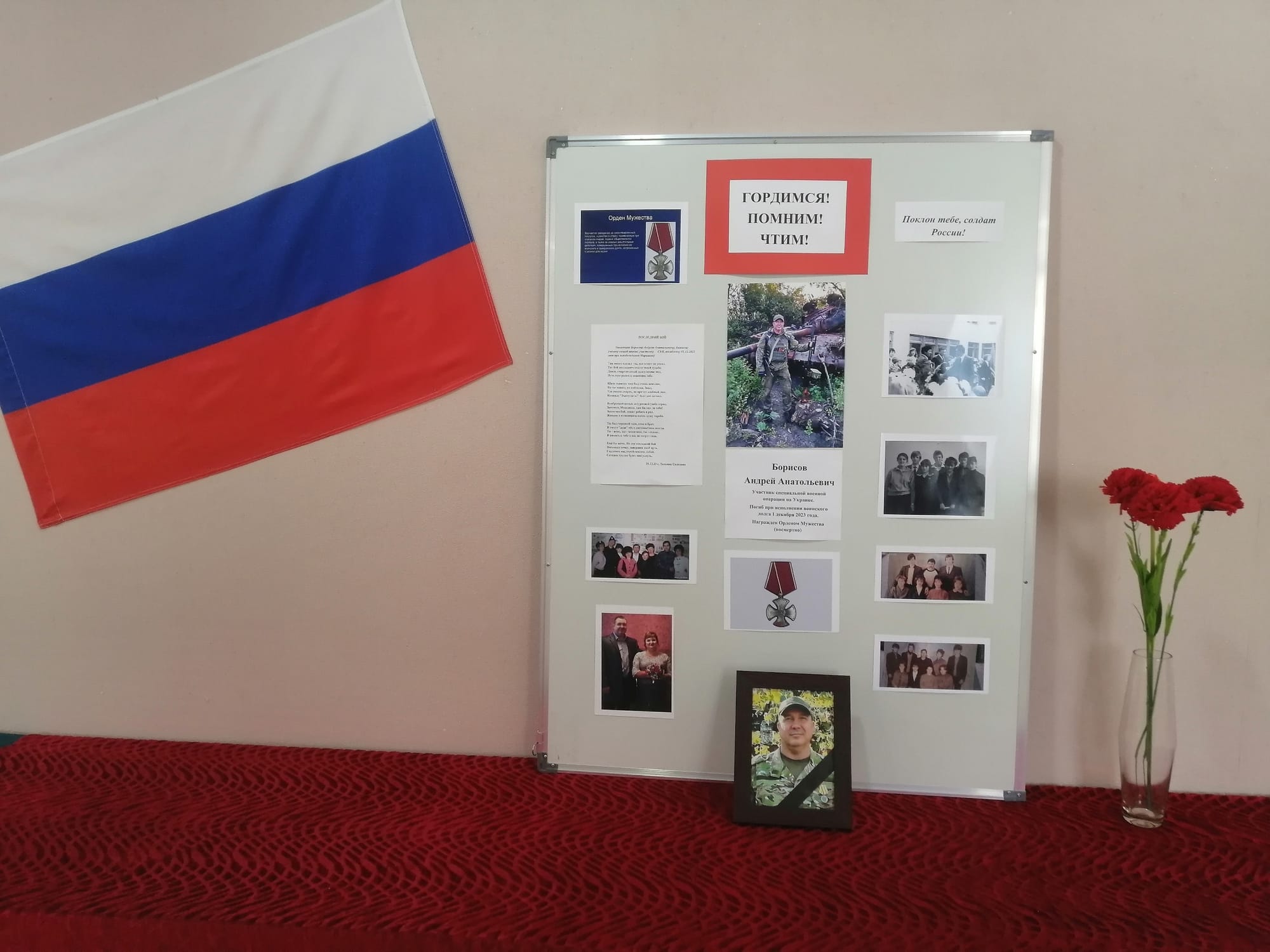 A memorial plaque to the hero of the Northern Military District was unveiled at the Station SchoolOn the eve of Victory Day, a memorial plaque was unveiled at the secondary school in the village of Tsentralny to school graduate Andrei Anatolyevich Borisov, who died during a special military operation.