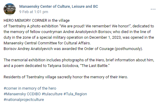 "Remember my former comrade in arms, Lieutenant Colonel Andrei Borisov, friends!