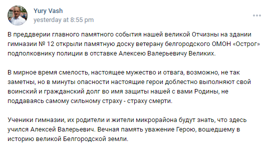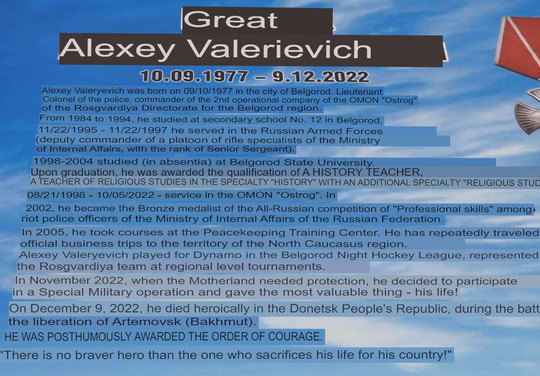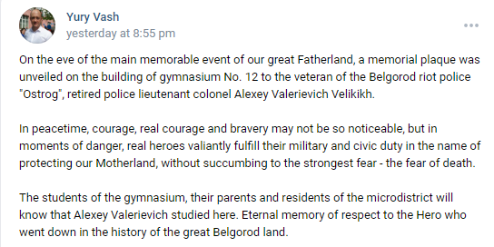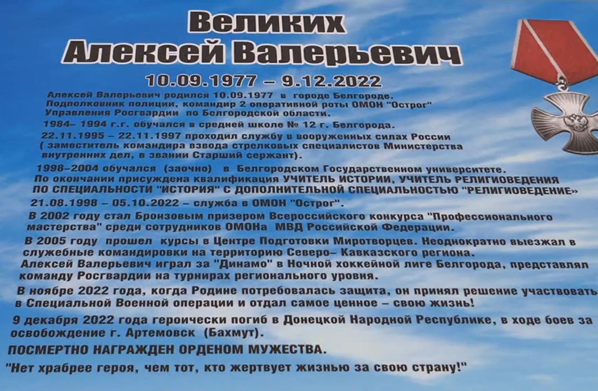 Alexey Valerievich Velikikh died on December 9, 2022 near the city of Bakhmut.