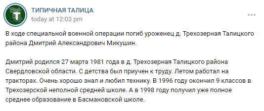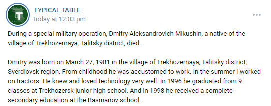Place of Birth: Trekhozernaya, Talitsky district, Sverdlovsk region, Russia