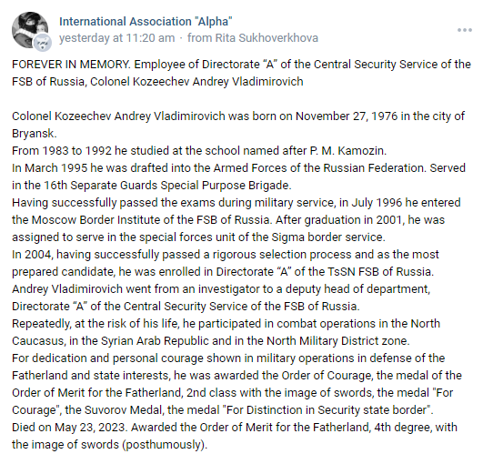 Education: Moscow Border Institute of the FSB of Russia (graduated 2001)