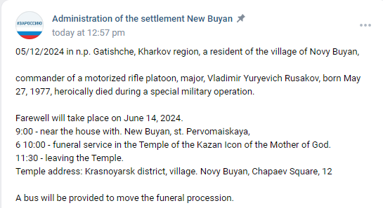 Place of Death: Hatyshche, Kharkiv Oblast, Ukraine