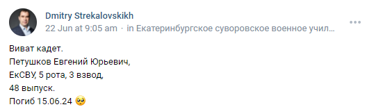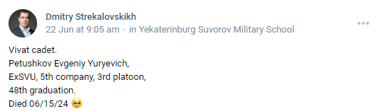 Education: Yekaterinburg Suvorov Military School (graduated 1996)