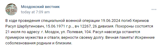 Unit: 26th Motorized Rifle Regiment, 70th Motorized Rifle Division, 18th Combined Arms Army, Southern Military District