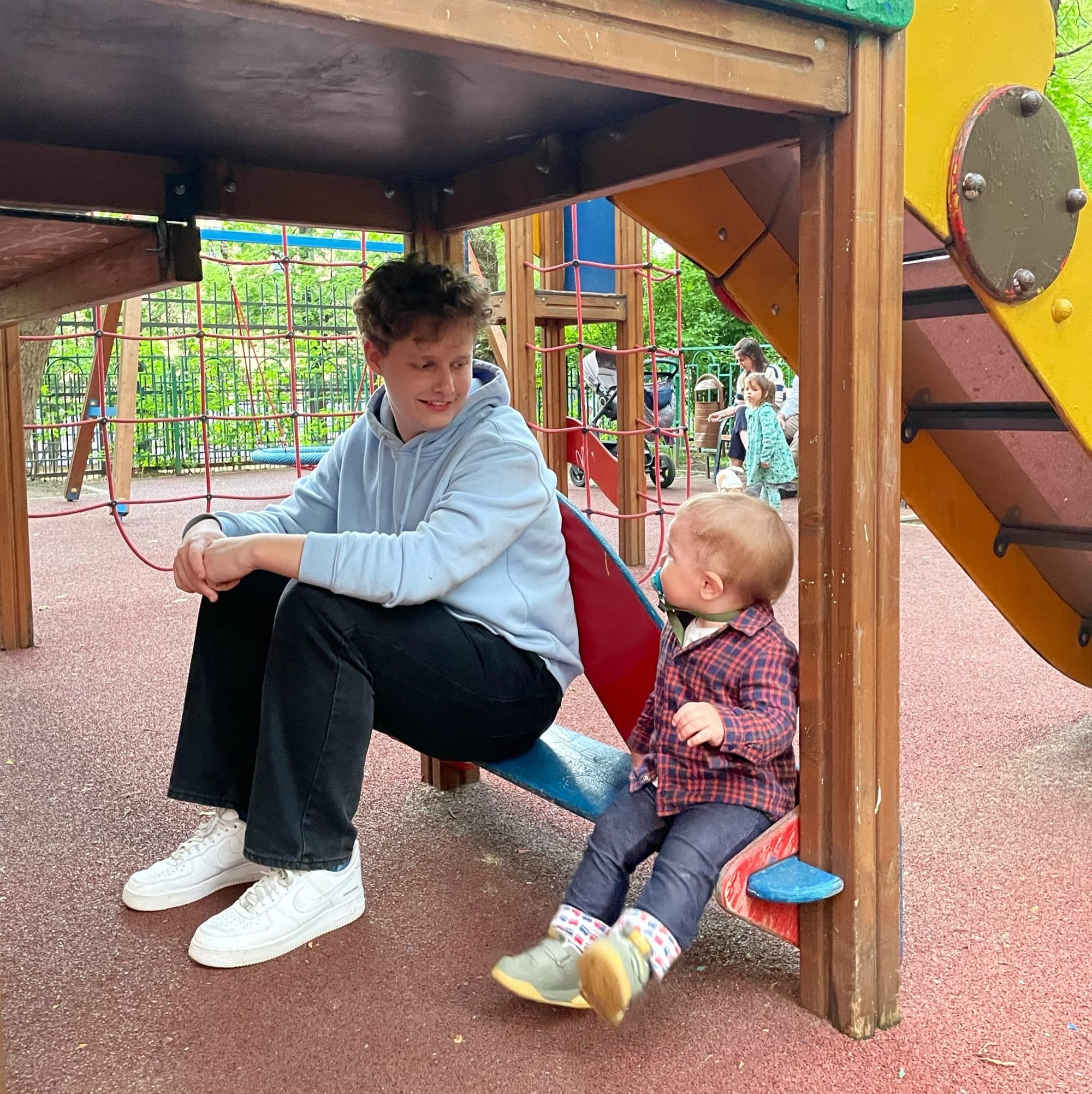 - In the photo Evgeniy is 33 and Arseniy is 8-9
