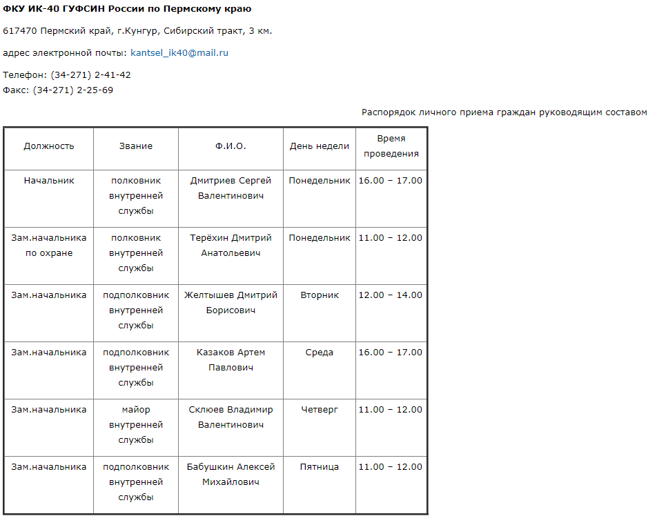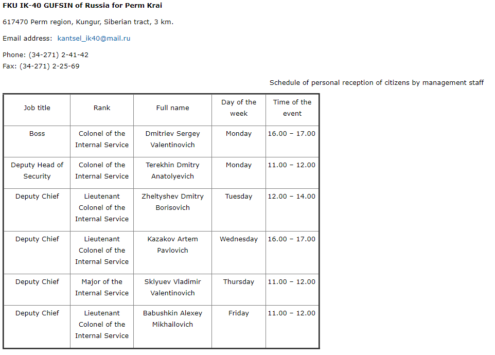 Formerly: Deputy Chief of Federal Penitentiary Institution No. 40 of the Main Directorate of the Federal Penitentiary Service of Russia for Perm Krai