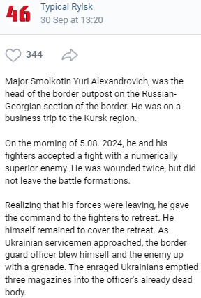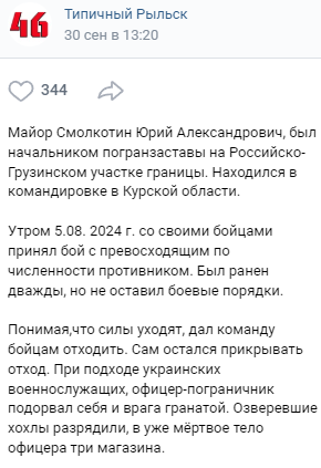 Yuri was commander of an outpost on the Russian-Georgian section of the border - it's unknown what unit he served with in Kursk.