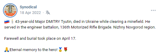 Unit: Engineering Battalion, 136th Separate Guards Motor Rifle Brigade, 58th Combined Arms Army, Southern Military District