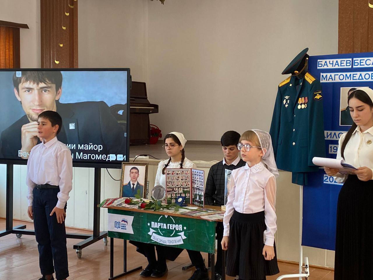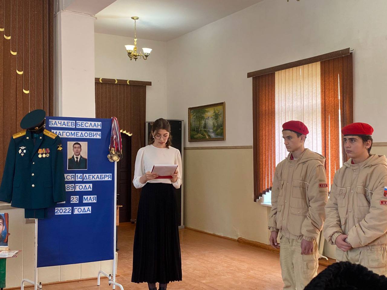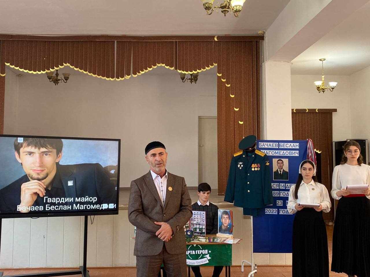 For some reason the uniform they chose to display at this ceremony has Junior Lieutenant's epaulettes. However, the large monitor clearly confirms him as "Guards Major Beslan Magomedovich Bachaev".