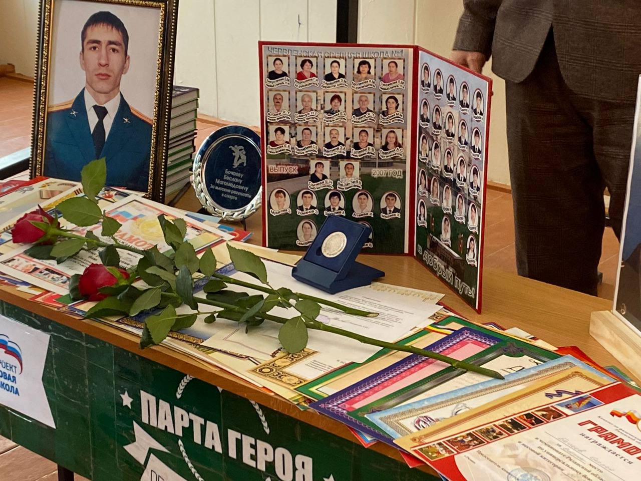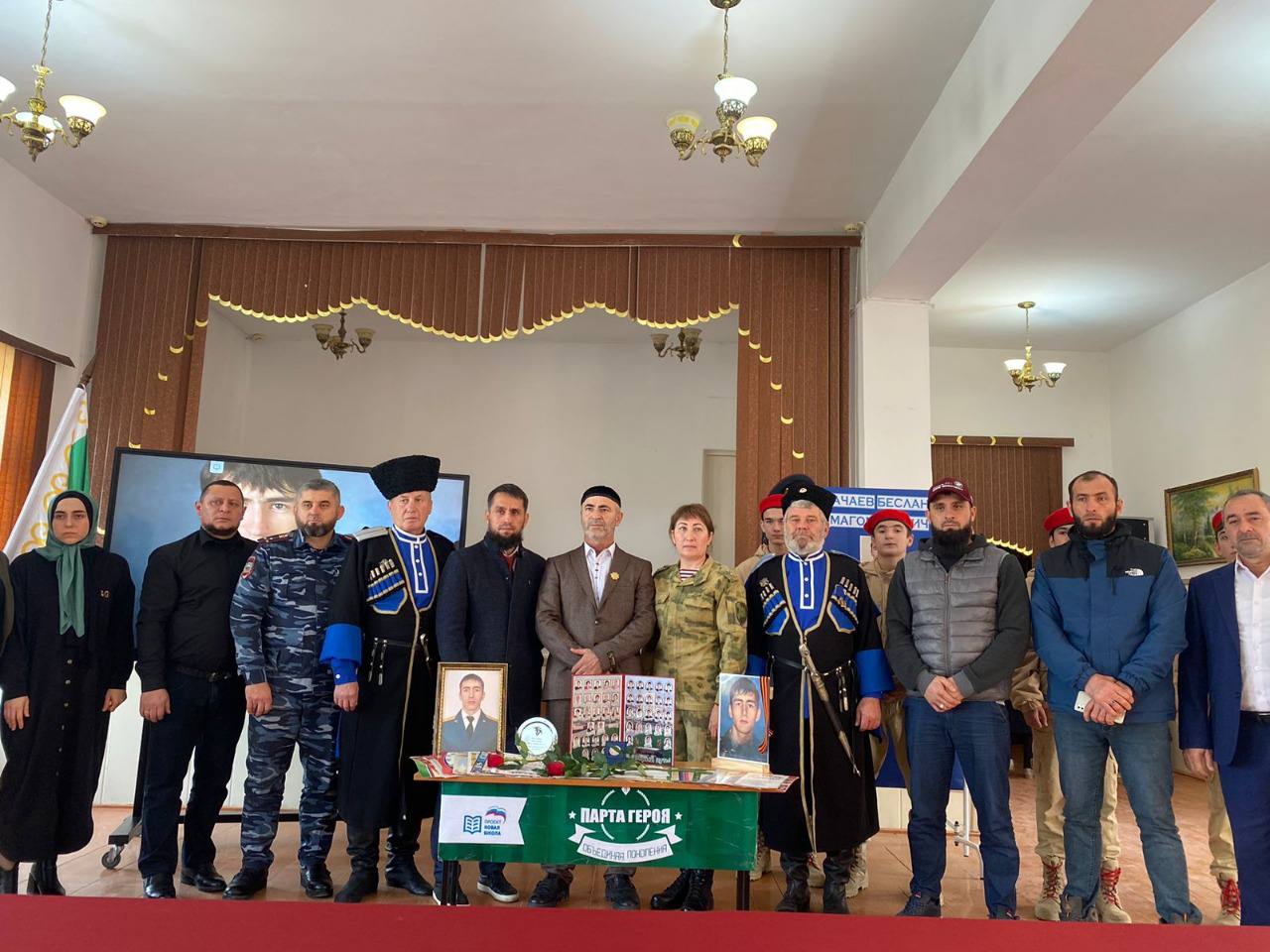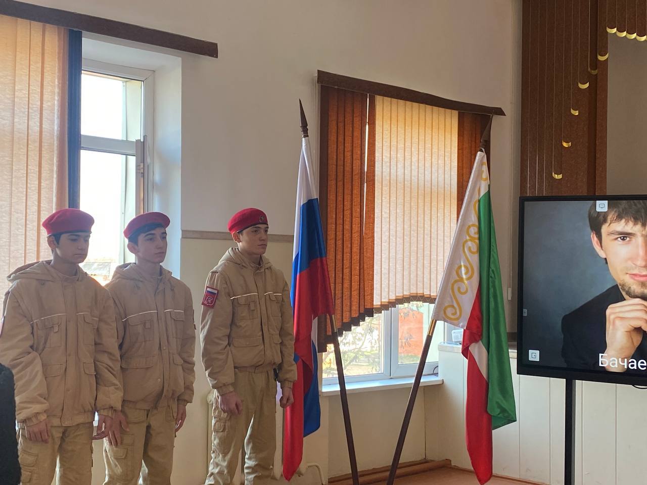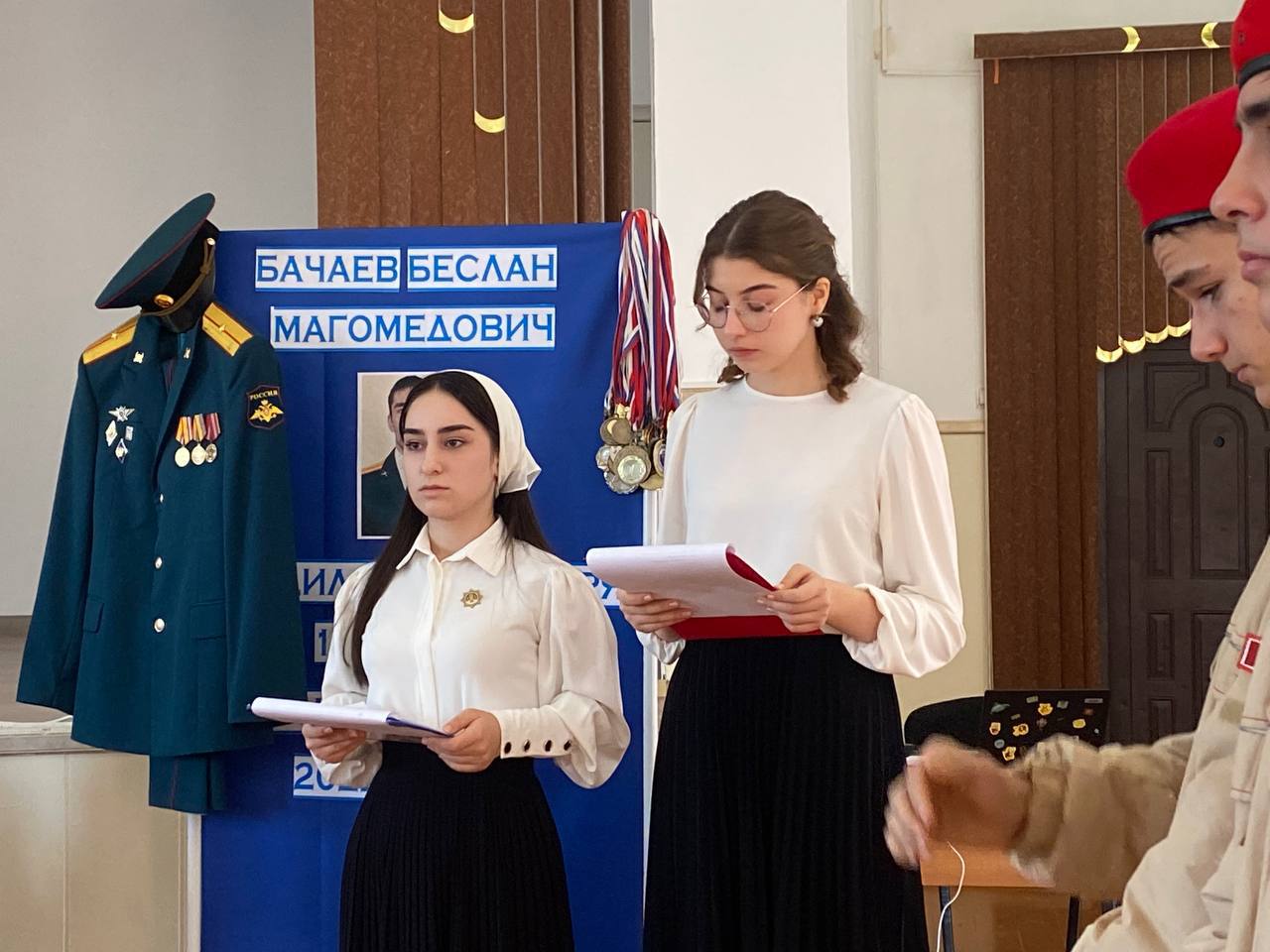 For some reason the uniform they chose to display at this ceremony has Junior Lieutenant's epaulettes. However, the large monitor clearly confirms him as "Guards Major Beslan Magomedovich Bachaev".
