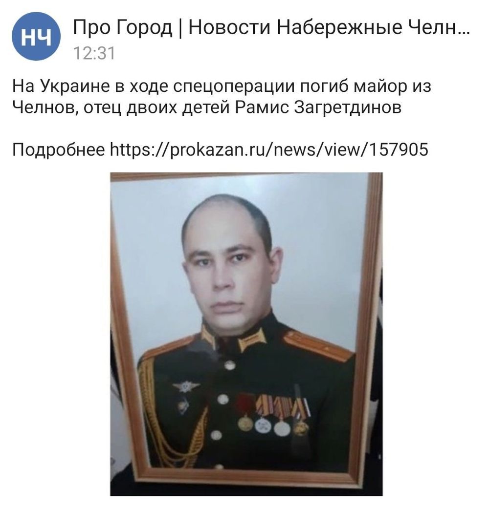 In Naberezhnye Chelny they said goodbye to Major Ramis Zagrtdinov, who died during a special operation. He was 34 years old. The young man was presented with a high award.
