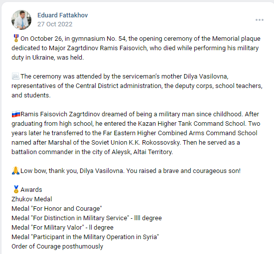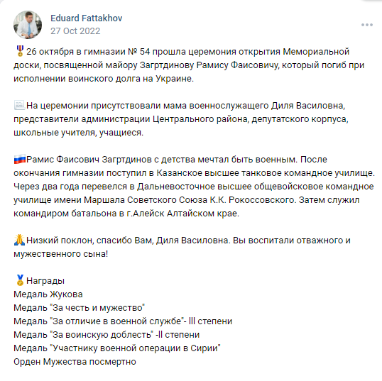 Relatives, friends, representatives of the executive committee, the government of Tatarstan and the military commissariat came to say goodbye to Ramis Zagrtdinov. Zagrtdinov’s wife and children, colleagues and battalion commander flew to Chelny from Aleysk, Altai Territory, where the deceased lived and served before being sent to Ukraine.