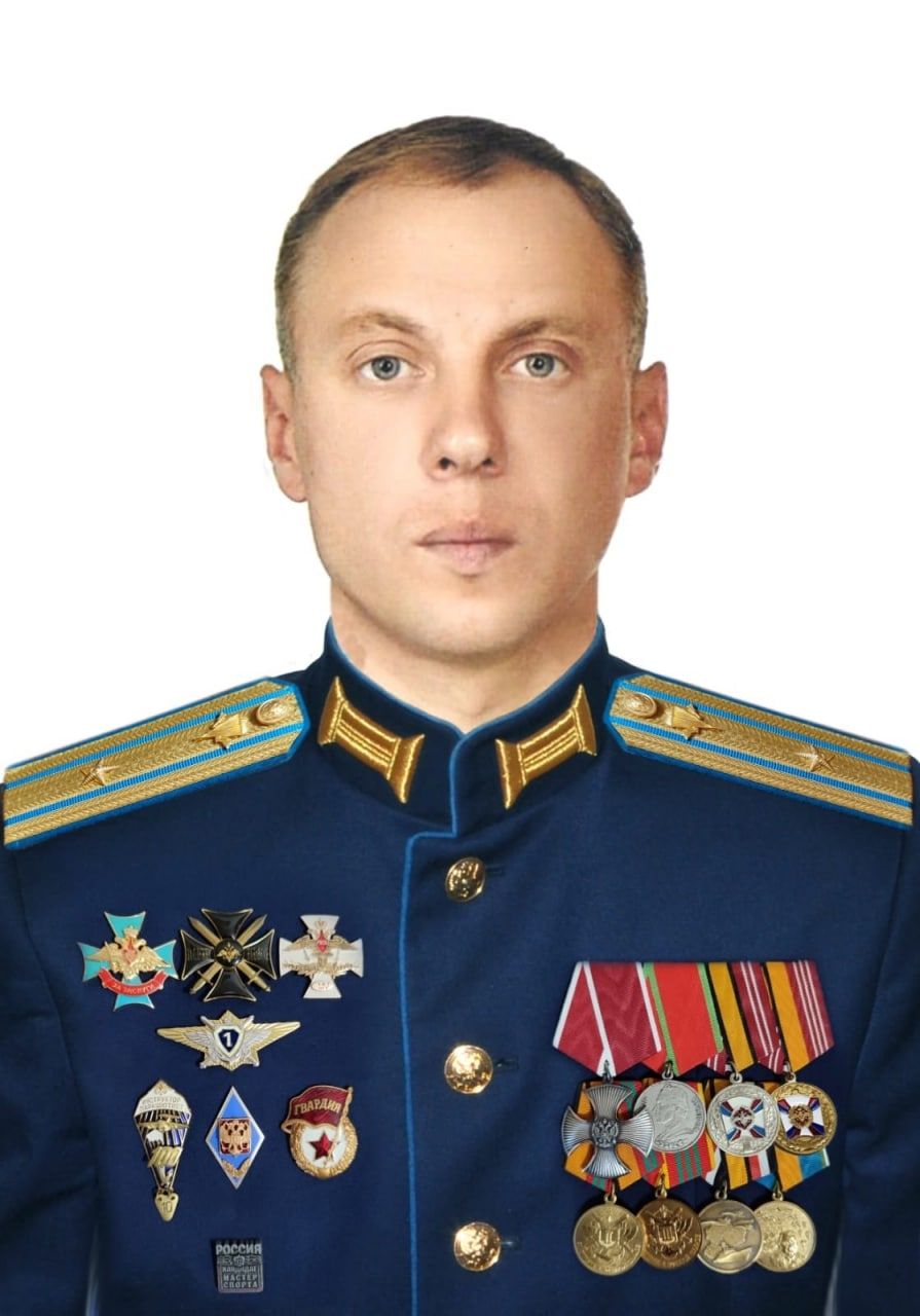 Awards: Order of Courage (ph.), Order of Courage, Medal of Suvorov, Medal "For Military Valor" 2nd Class, Medal "For Military Valor" 3rd Class, Medal "For Distinction in Military Service" 2nd Class, Medal "For Distinction in Military Service" 3rd Class, Medal "Participant of the Military Operation in Syria", Medal "Army General Margelov", Under Investigation, Badge "For Service in the North Caucasus", Badge "Officer 1st Class", Badge "Instructor Parachutist", Badge "Graduation from a Higher Education Institution", Badge "Guard"