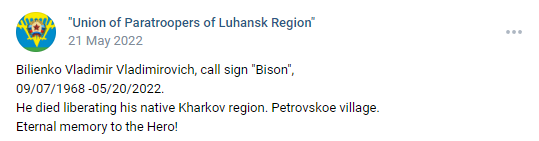 Place of Death: Petrovskoe village, Kharkiv Oblast, Ukraine