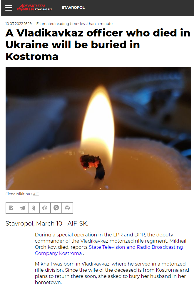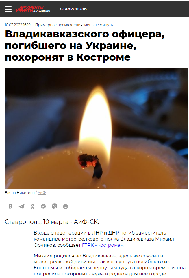 Mikhail Orchikov was posthumously awarded the Order of Courage. The award was given to the serviceman's wife.
