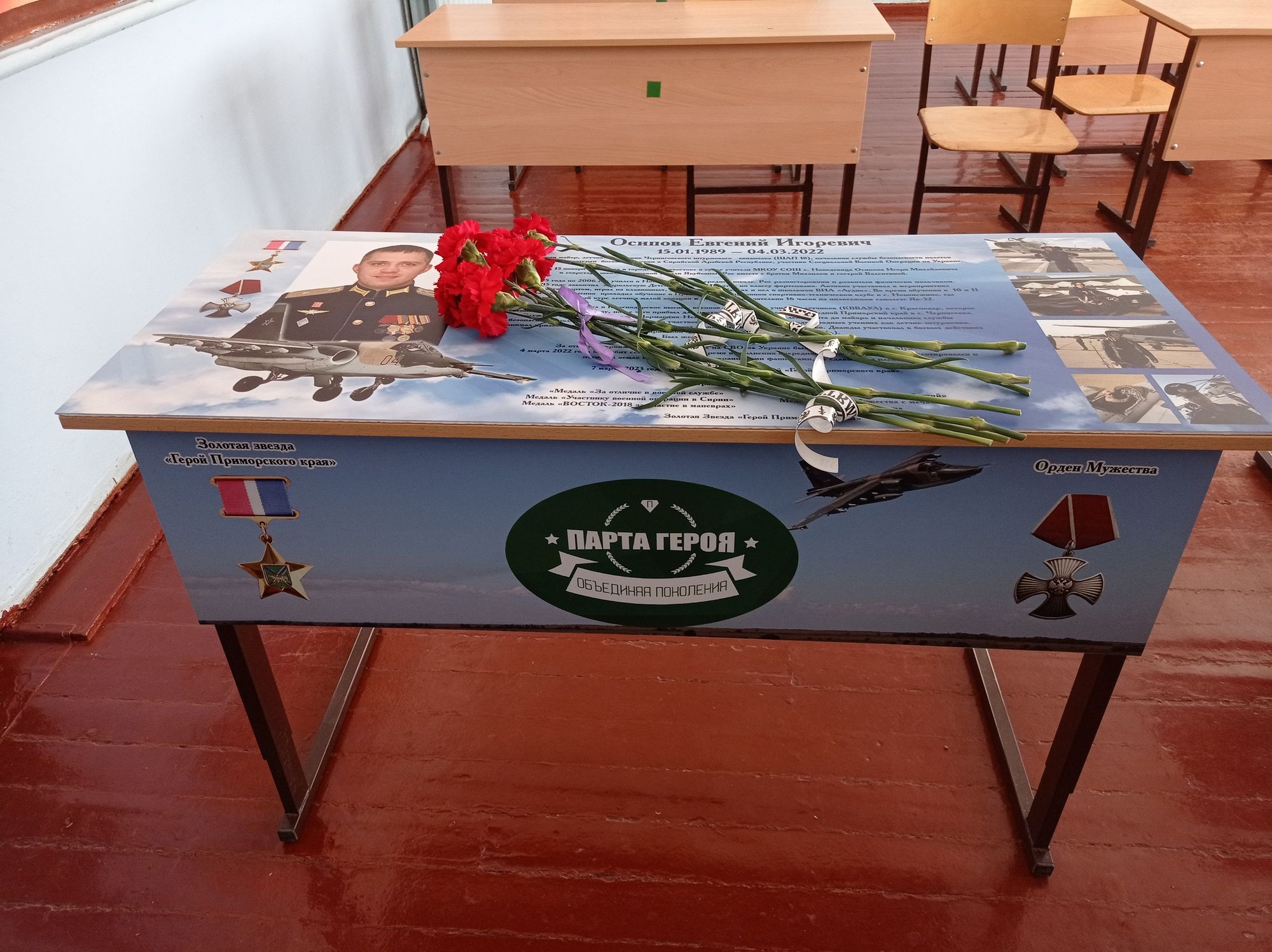 April 3 at the secondary school. Novodevitsa Khorolsky Moscow Region held an event to open the Hero’s Desk dedicated to Guard Major Evgeniy Igorevich Osipov.