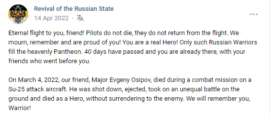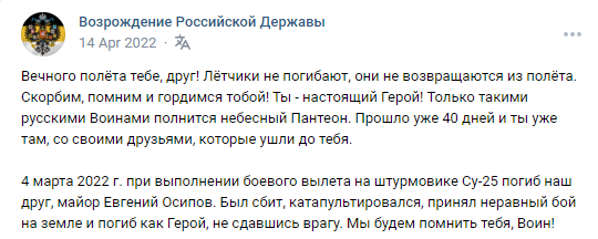 Today marks a year since our comrade, attack pilot Major Evgeniy Igorevich Osipov, did not return from a combat mission.
