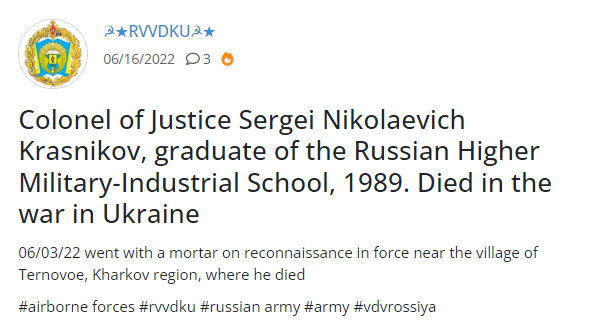The colonel died in the Kharkov region. In the village of Ternovoe, the Hero conducted reconnaissance in force and died a heroic death on June 3.