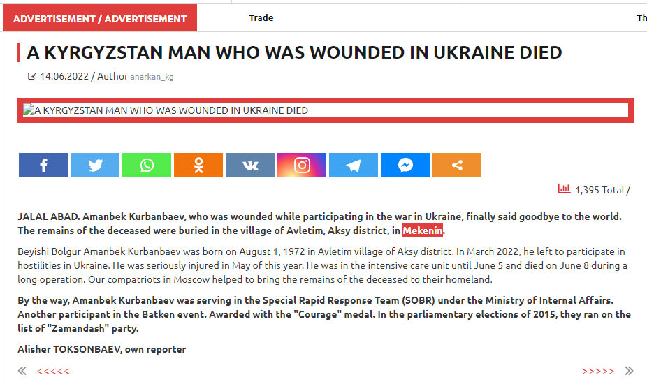 Place of Birth: Avletim village of Aksy district, Jalal-Abad region