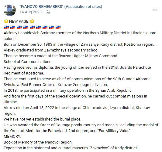 Place of Death: Chistovodovka, Izium district, Kharkiv Oblast, Ukraine