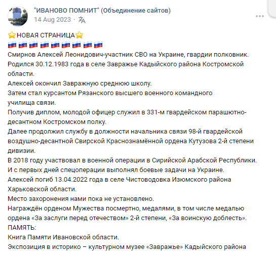 Unit: 98th Guards Airborne Division, Western Military District